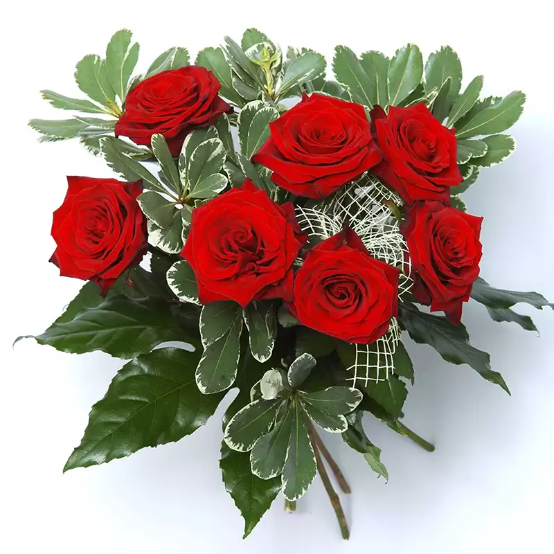 Kytice z rudých růží jasně vyjádří vaše city k obdarované. Růže jsou odrůdy Freedom nebo Explorer.