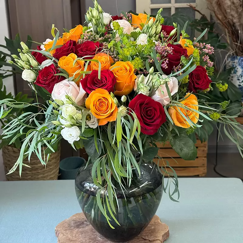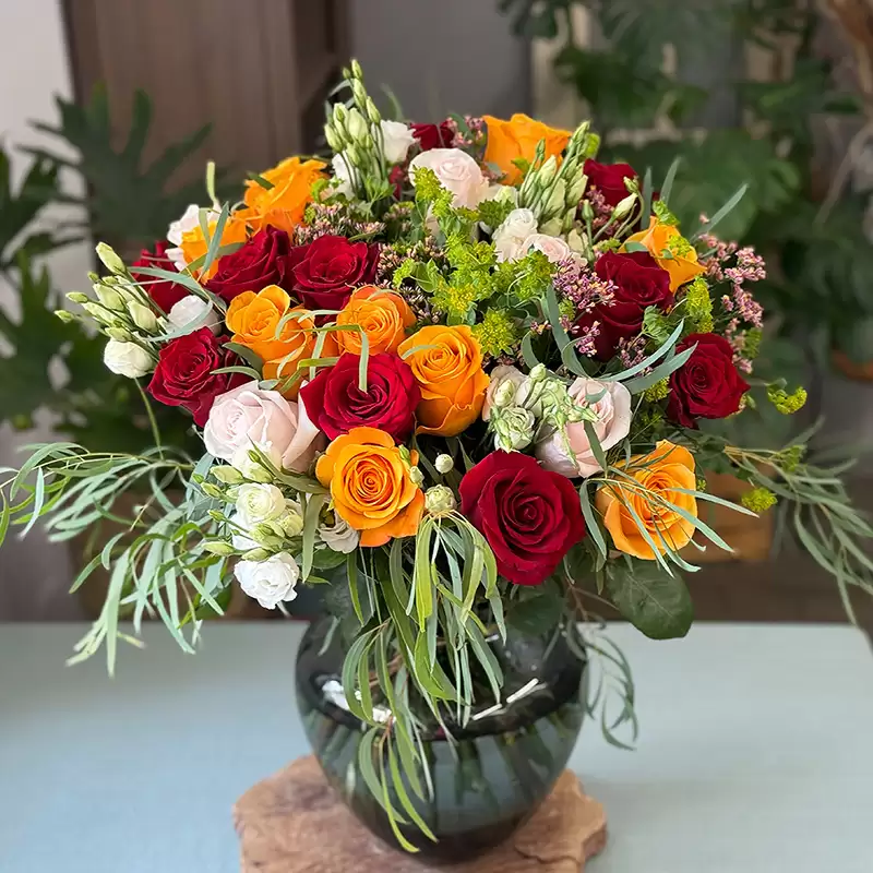 Možnosti záměny - vždy se snažíme aby květina odpovídala obrázku, doplňková zeleň se může lišit dle momentální dostupnosti a barva růží také.