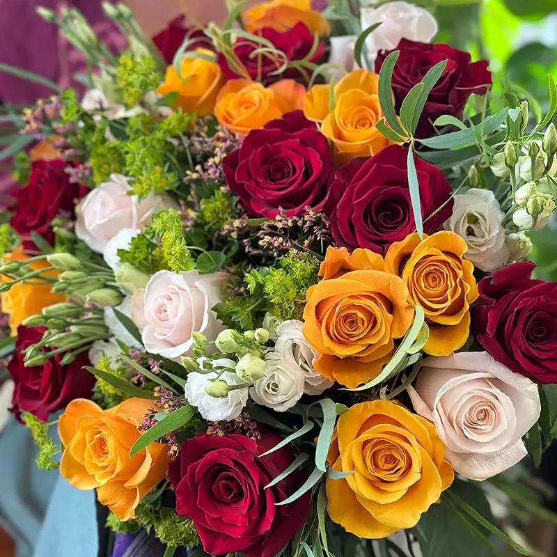 Kytice Svět růží je luxusní mix ekvádorských růží s eustomou, limoniem a eukalyptem – kvalita květin je ta nejvyšší možná A1, růže mají velký květ, který se postupně otevírá a dlouho vydrží pěkný. Eukalypt pochází z italských farem.